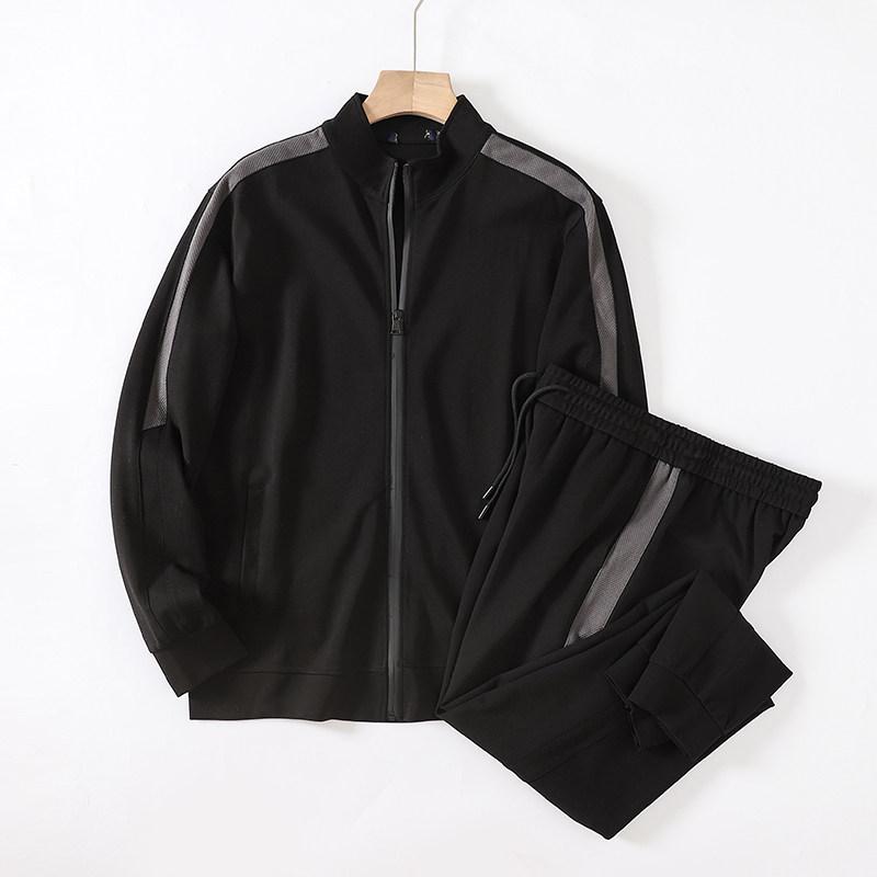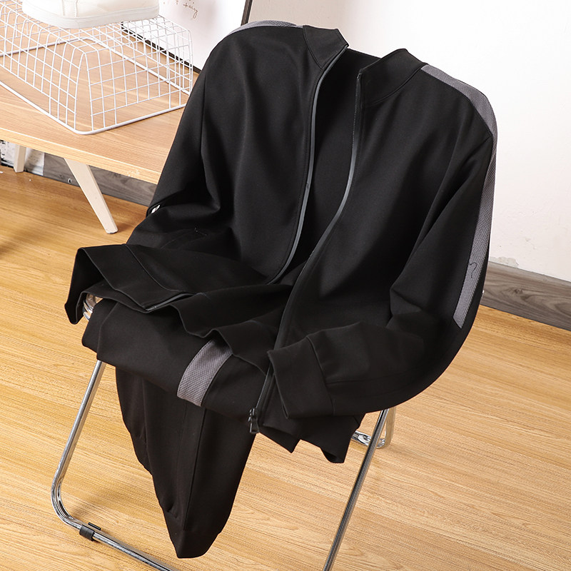 外贸捡漏尾单 男士 四面弹力罗马布撞色拼接牛货休闲运动套装 秋季