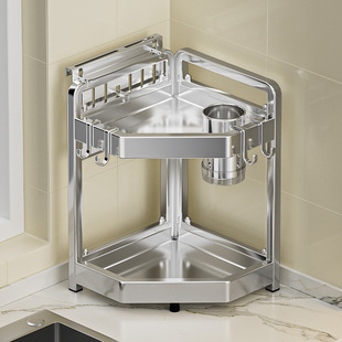 为您提供商品特厚不锈钢厨房三角架家用刀架台面转角收纳调味品调料拐角置物架的详细介绍,