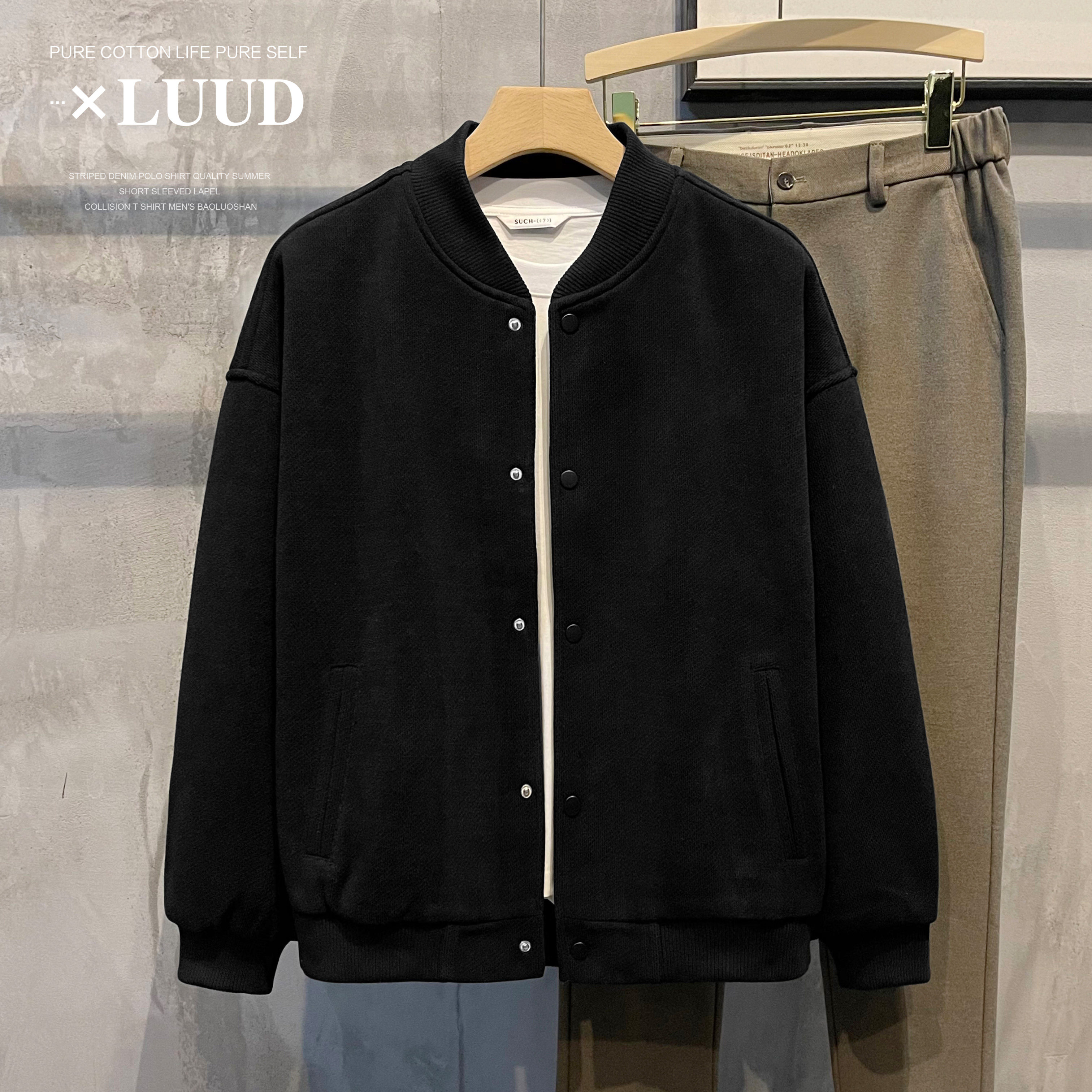 复古休闲棒球服外套男纯色简约长袖 保暖夹克上衣潮 冬新款 LUUD由