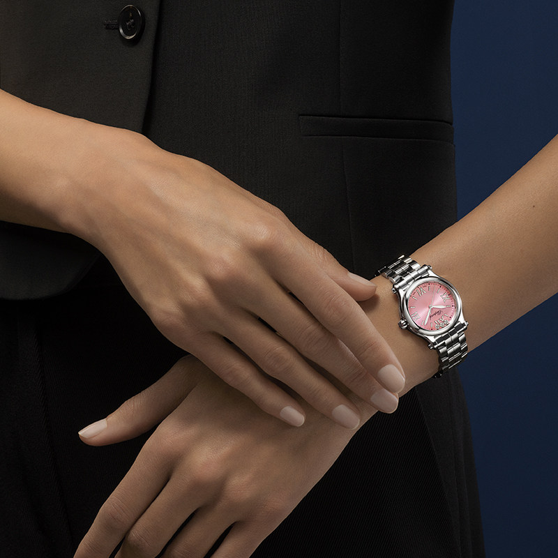 Chopard萧邦30mm快乐钻石精钢蓝盘石英腕表女表生日礼物送女友由