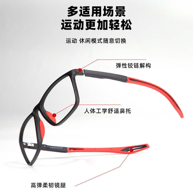 男士 运动防滑黑红近视眼镜框可配度数变色防脱落超轻防蓝光男款