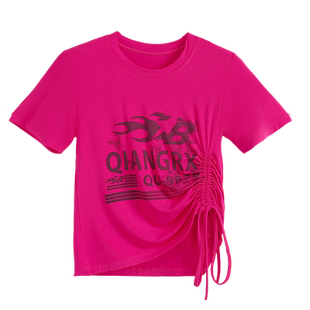 t恤女跳舞伞兵裤 广场舞曳步舞服装 新款 抽绳短袖 子爵士舞衣服套装