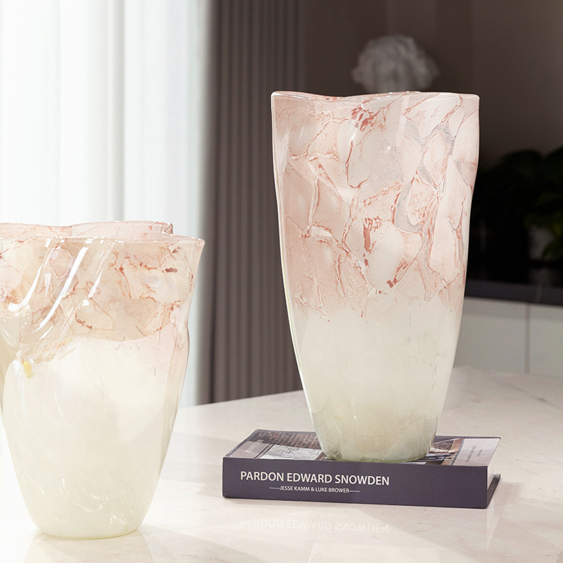 花瓶轻奢粉色艺术设计感花瓶中古风玻璃插花花瓶 柏梵特别好看