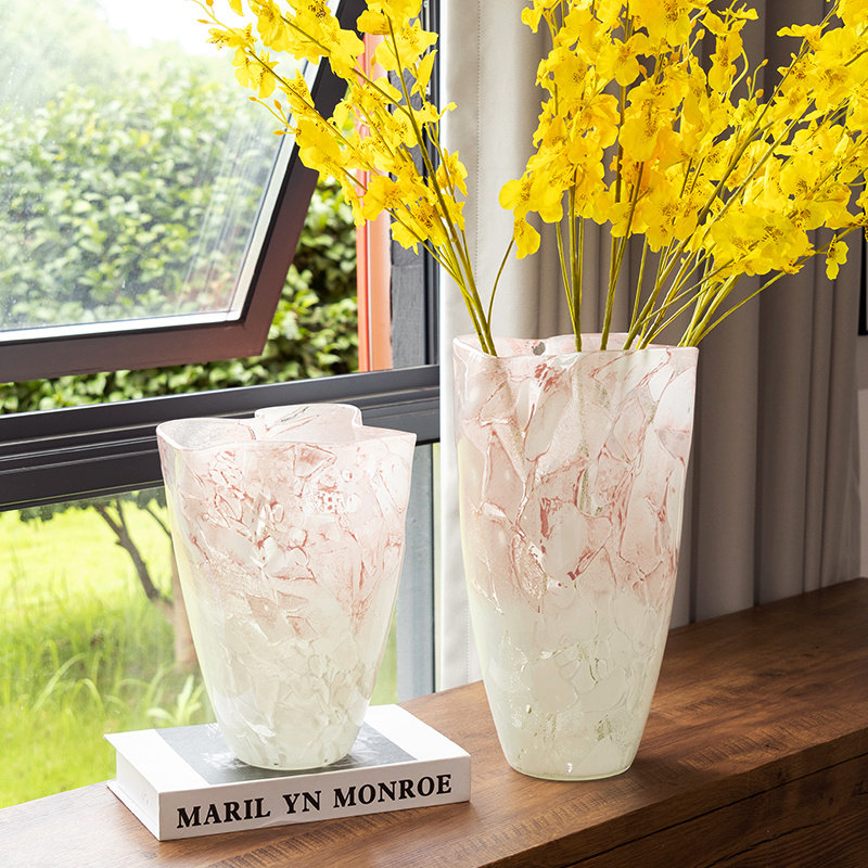 花瓶轻奢粉色艺术设计感花瓶中古风玻璃插花花瓶 柏梵特别好看由
