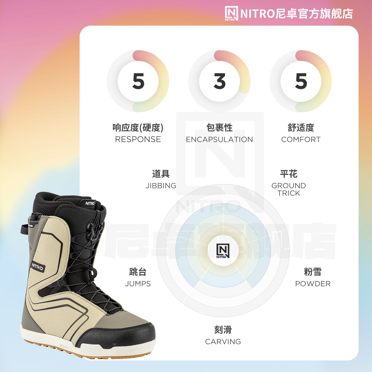 冷山雪具NITRO滑雪鞋 全能滑行滑雪靴滑雪单板鞋 女款 2526 单板雪鞋