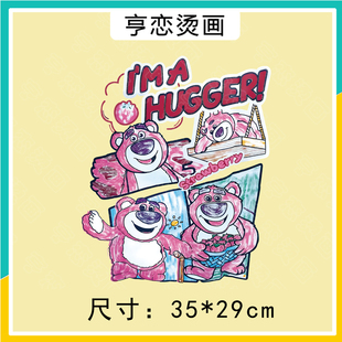 超大前后套图草莓熊手绘趣味图热转印T恤帆布包印花白墨胶印烫画由
