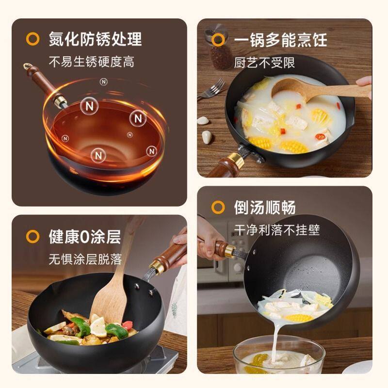 九阳铁锅无涂层炒锅家用炒菜锅不易粘锅电磁炉专用燃气灶旗舰店炊