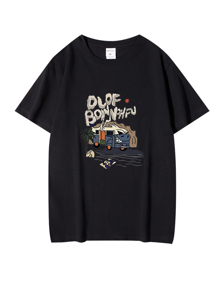 LA短袖 宽松百搭印花上衣白色11 T恤男女情侣落肩袖