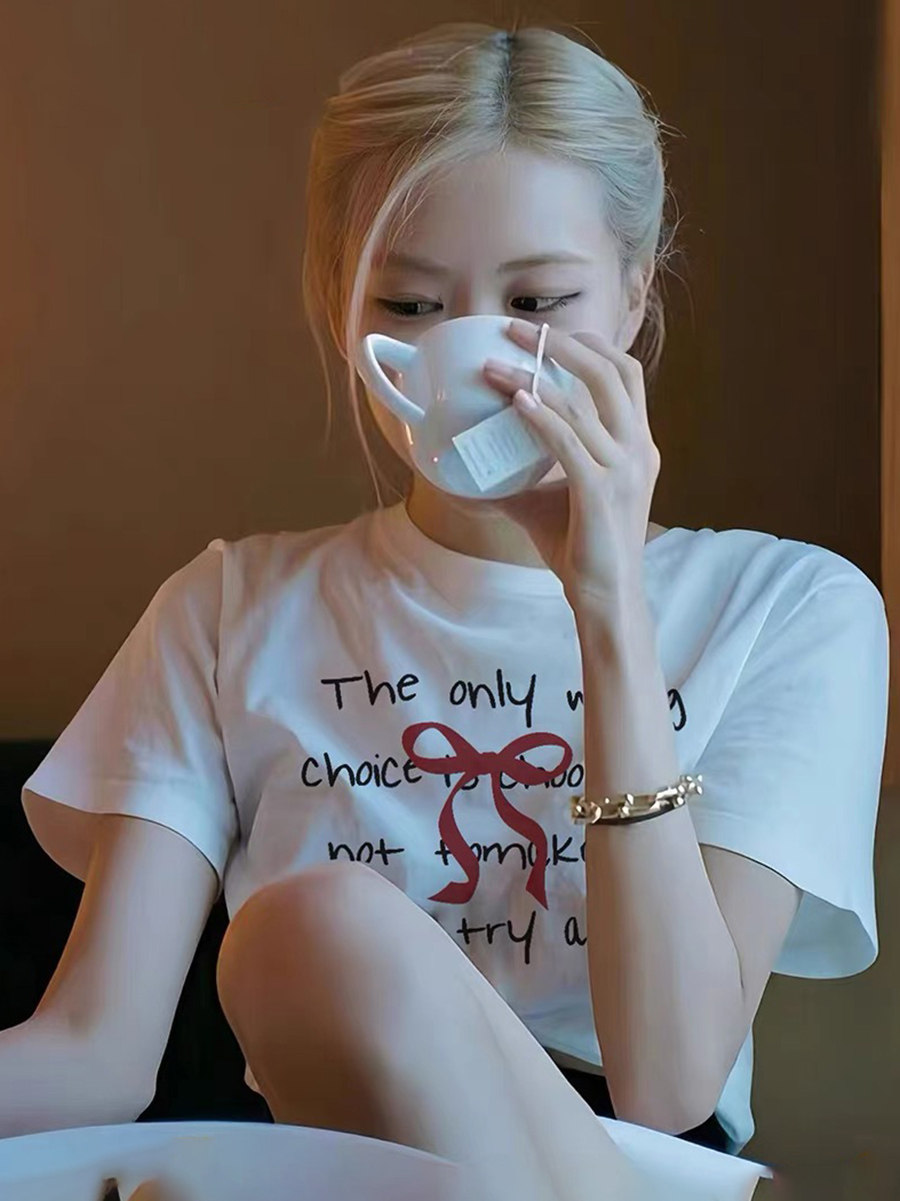 t恤女2026新款 黑色印花纯棉小众体恤上衣潮牌 短袖 朴彩英明星同款