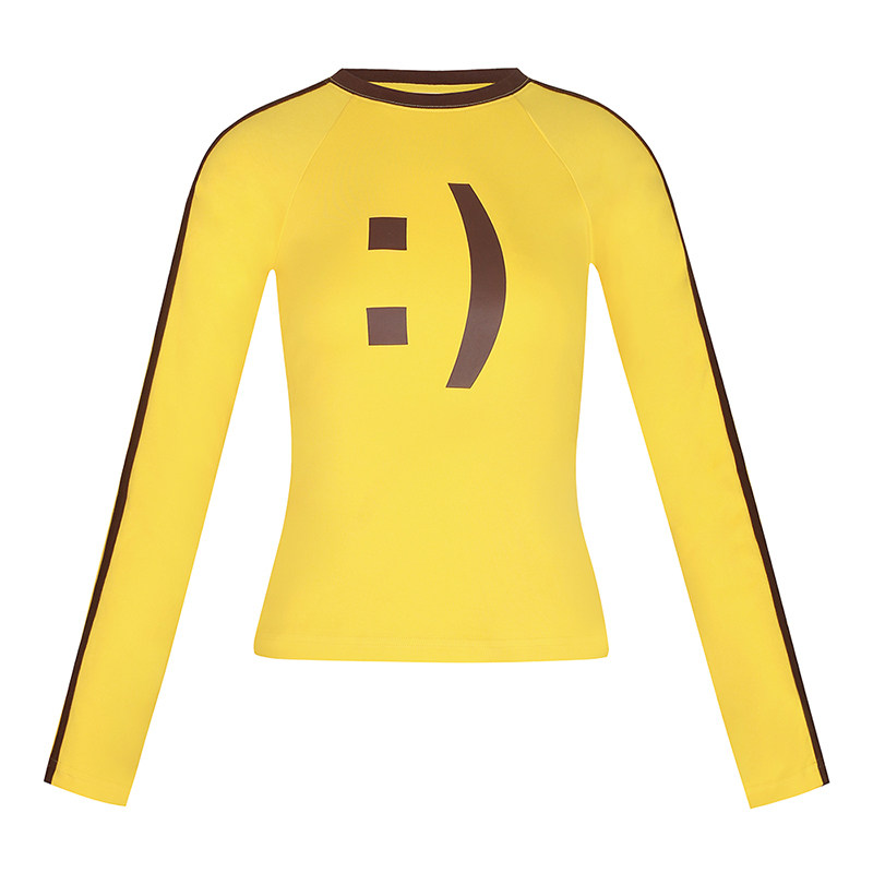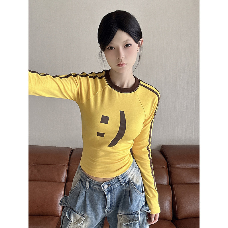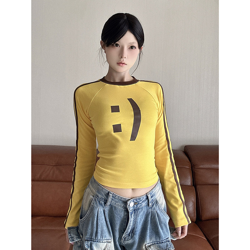LKSTORE 美式 修身 辣妹笑脸印花圆领打底T恤显瘦 LKOD2024秋冬新款