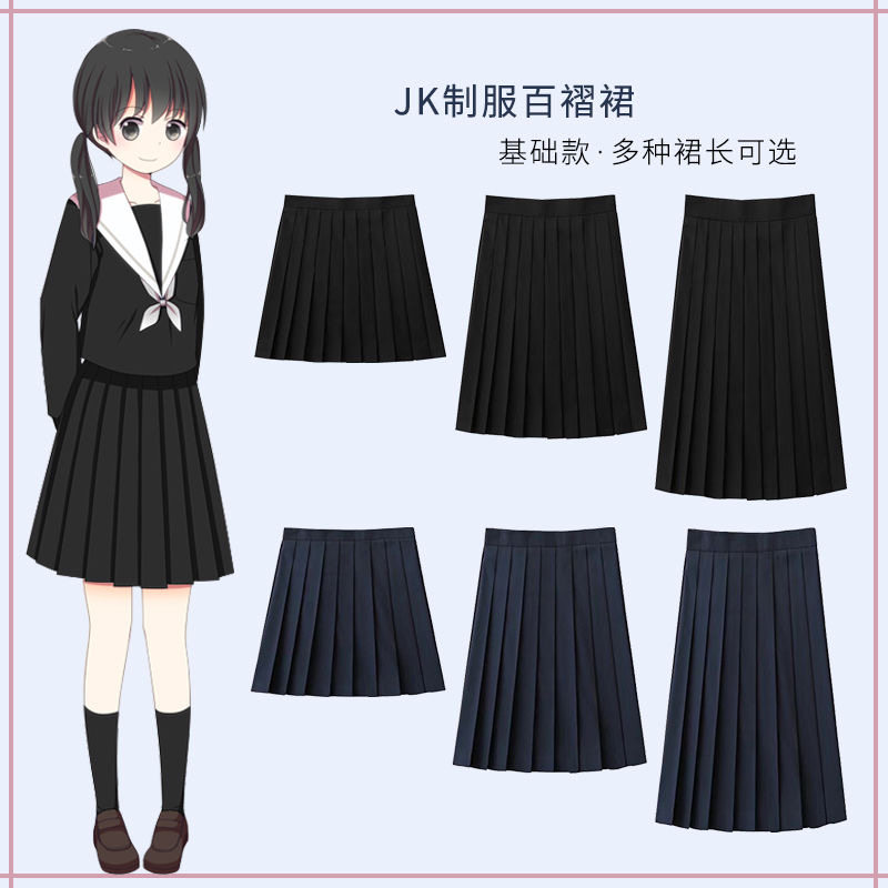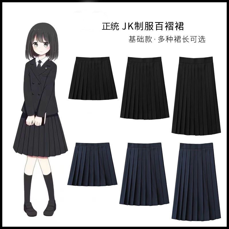 日系学院风绀色黑色短裙中裙长裙JK制服半身裙 青月社百褶裙A字裙