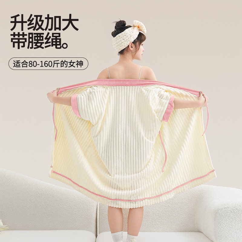 秋冬浴袍可穿浴巾女家用珊瑚绒吸水柔软速干浴裙洗澡睡袍睡衣连帽