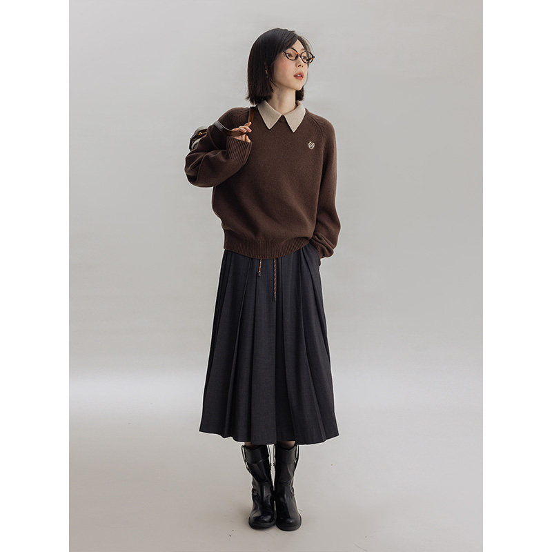 假两件翻领徽标绣章学院风针织衫 女春秋 羊毛混纺 Dotdrobe多着由