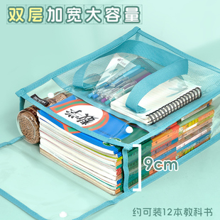 小学生初中生专用手提书袋高中生试卷资料书本作业袋子档案科目分类袋 双层大容量A4透明网纱文件收纳袋拉链式