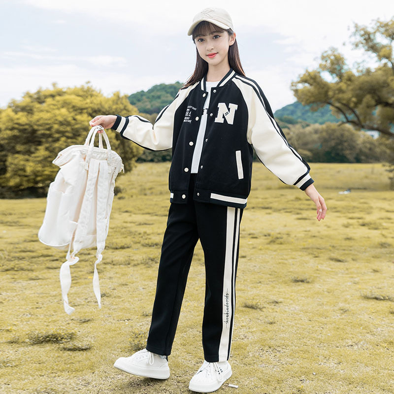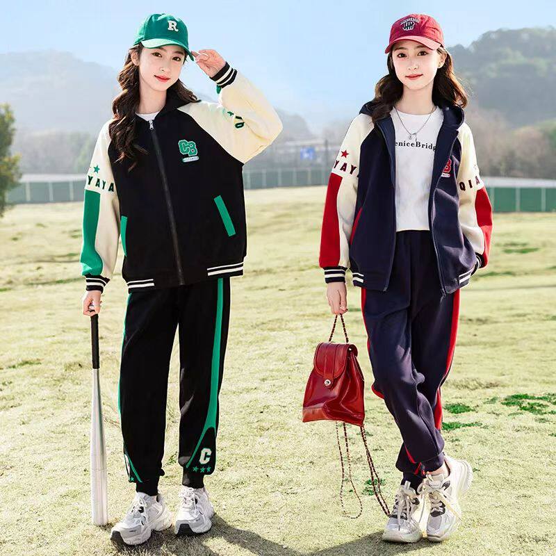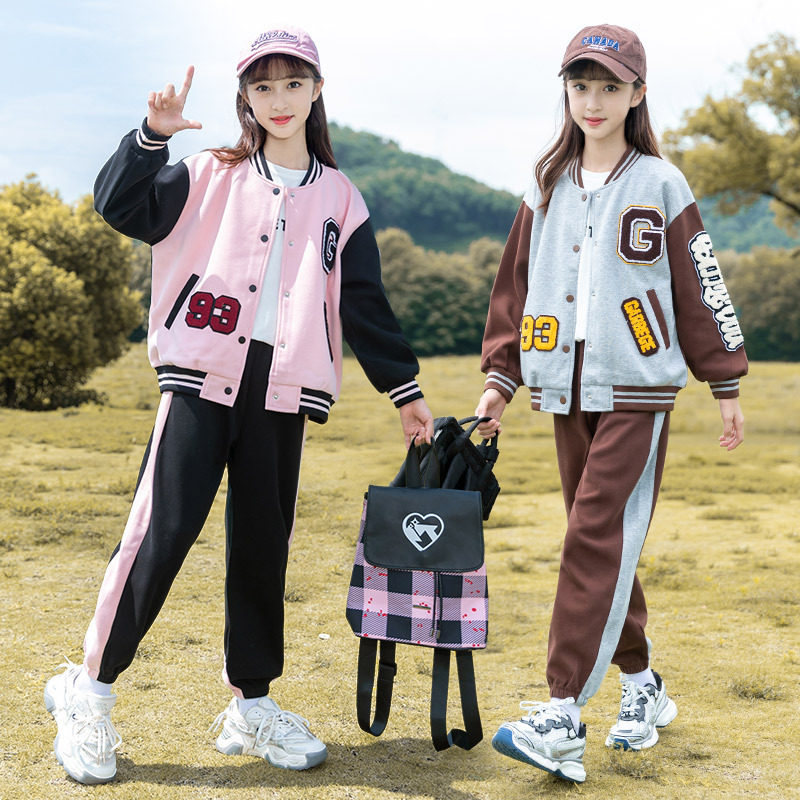 安奈儿联名儿童女童运动套装 外套洋气中大童棒球服两件套 2026春装