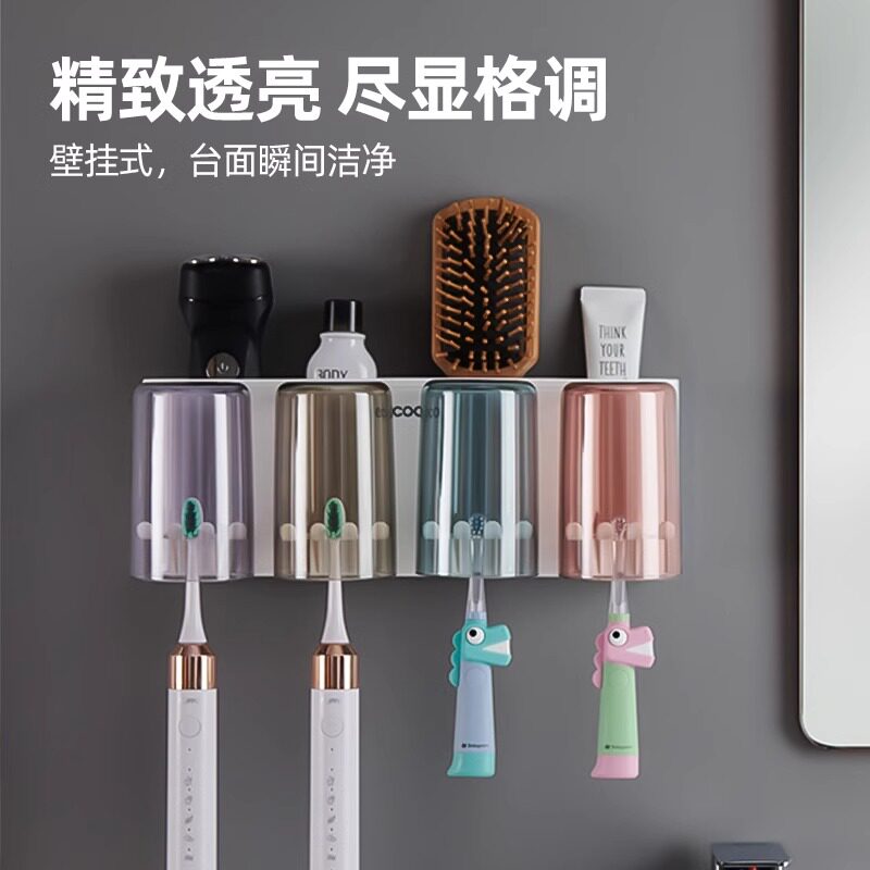 家庭电动牙膏牙刷架子 牙刷置物架免打孔漱口杯刷牙杯卫生间壁挂式