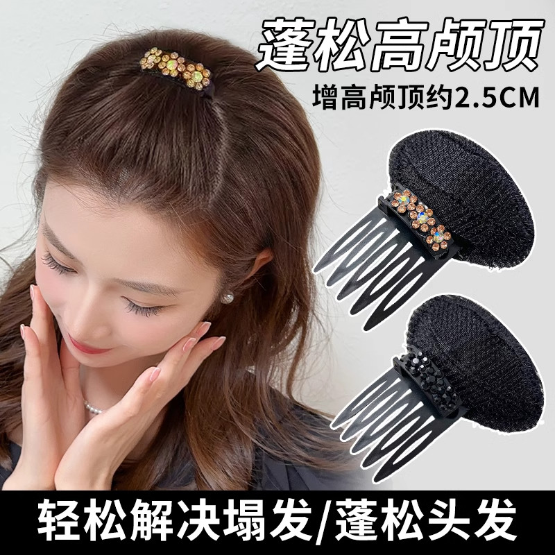 高颅顶蓬松神器女头顶隐形垫发根插梳前额刘海夹子水钻发夹子头饰由