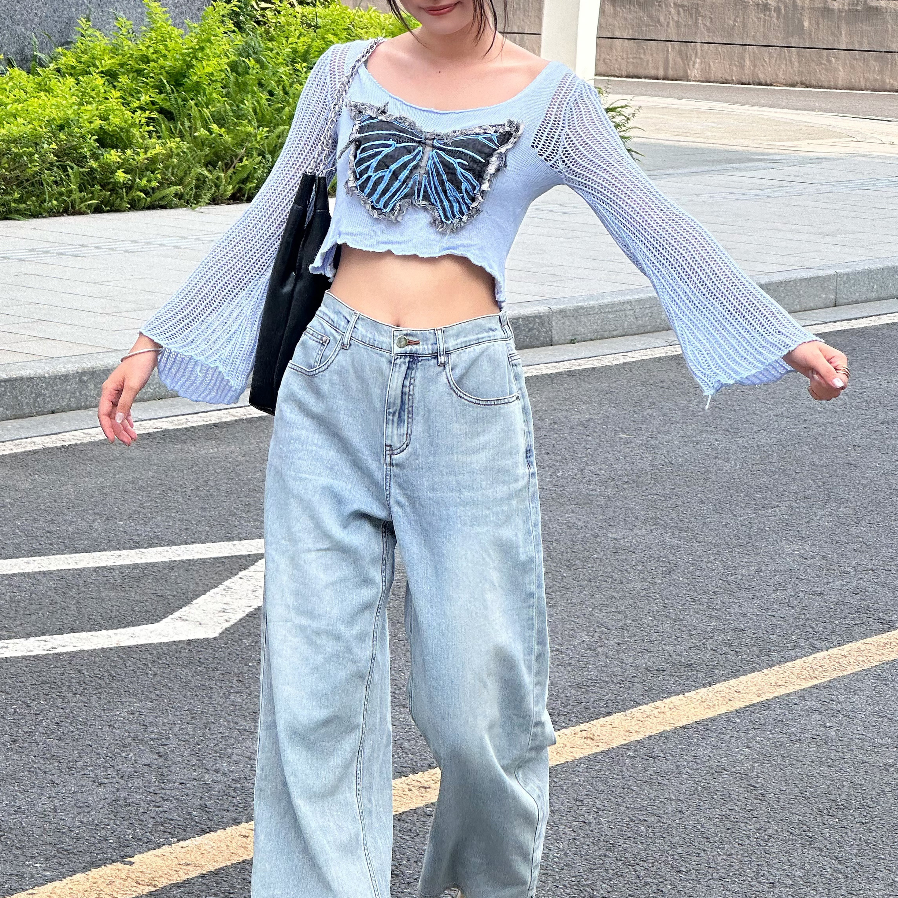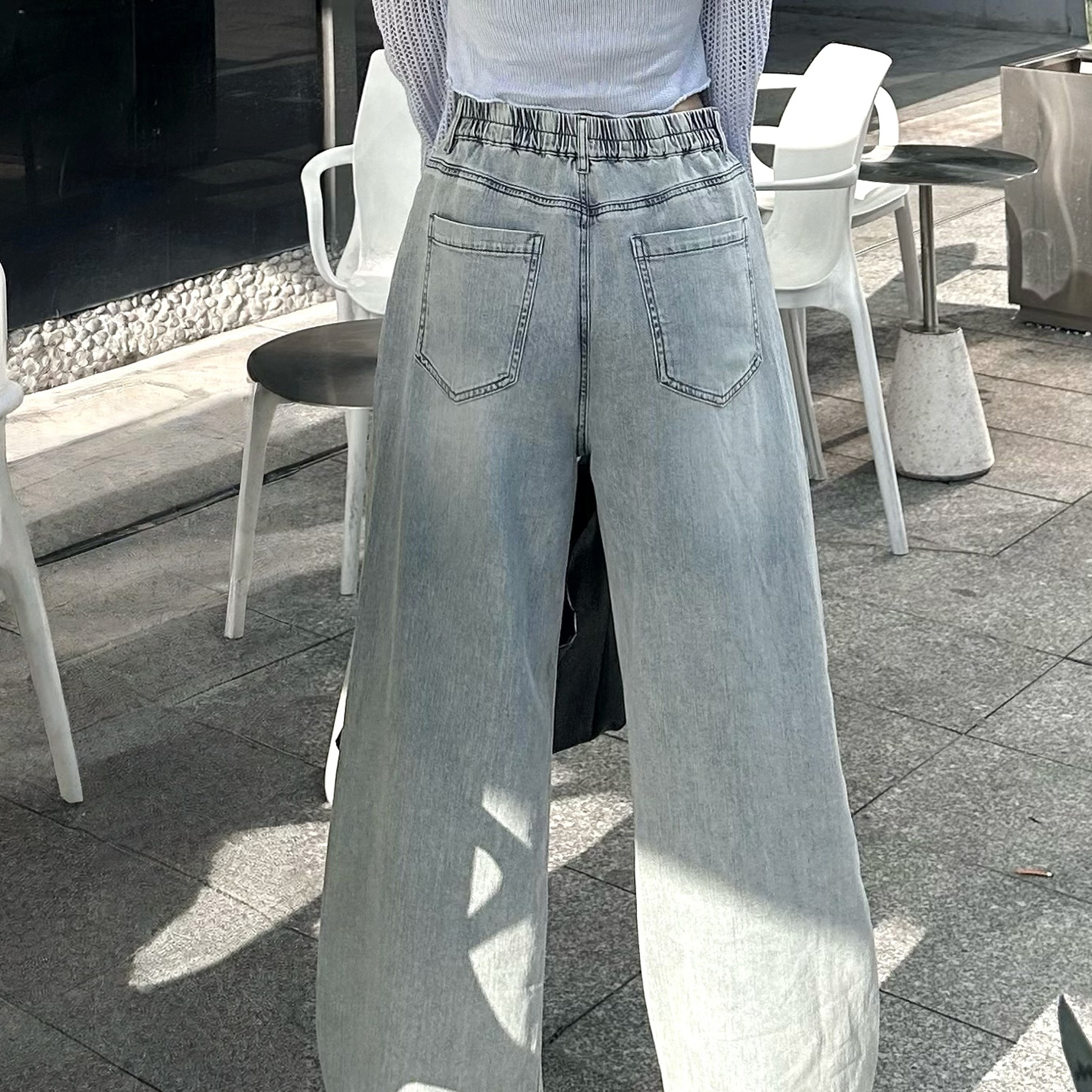 浮光织梦Float 复古浅蓝阔腿松紧腰宽松女夏装 牛仔裤 Dream25新款