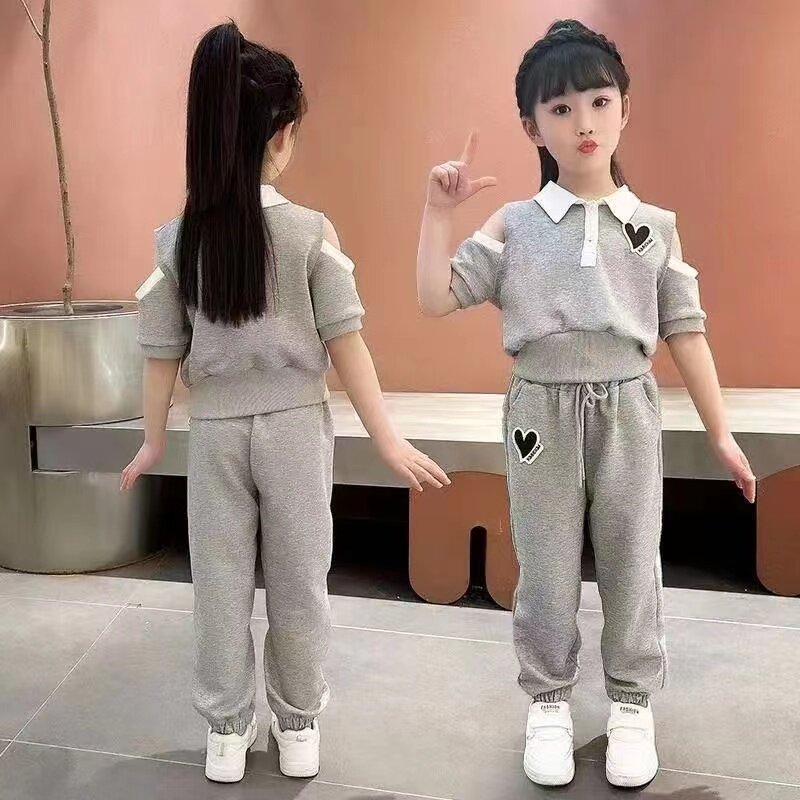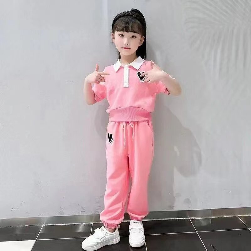 子夏季 女童夏装 两件套 裤 儿童时髦洋气运动女宝宝短袖 套装 2023新款