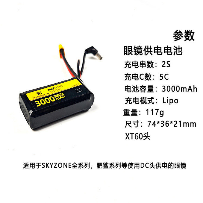 FPV 2S续航长容量大锂电池眼镜电池SKY肥鲨 MGC眼镜供电3000MAH由