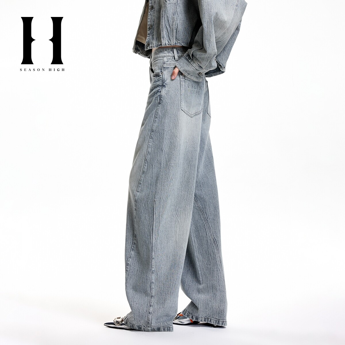 新款 SEASON HIGH女装 秋季 猫须水洗日常百搭宽松牛仔裤