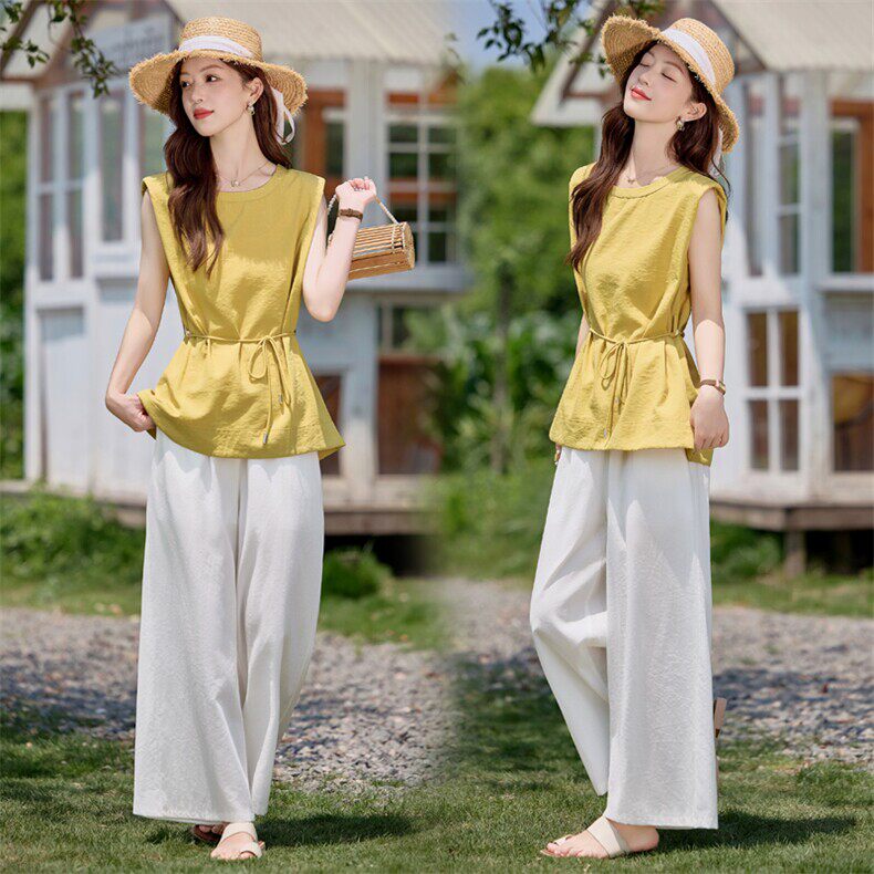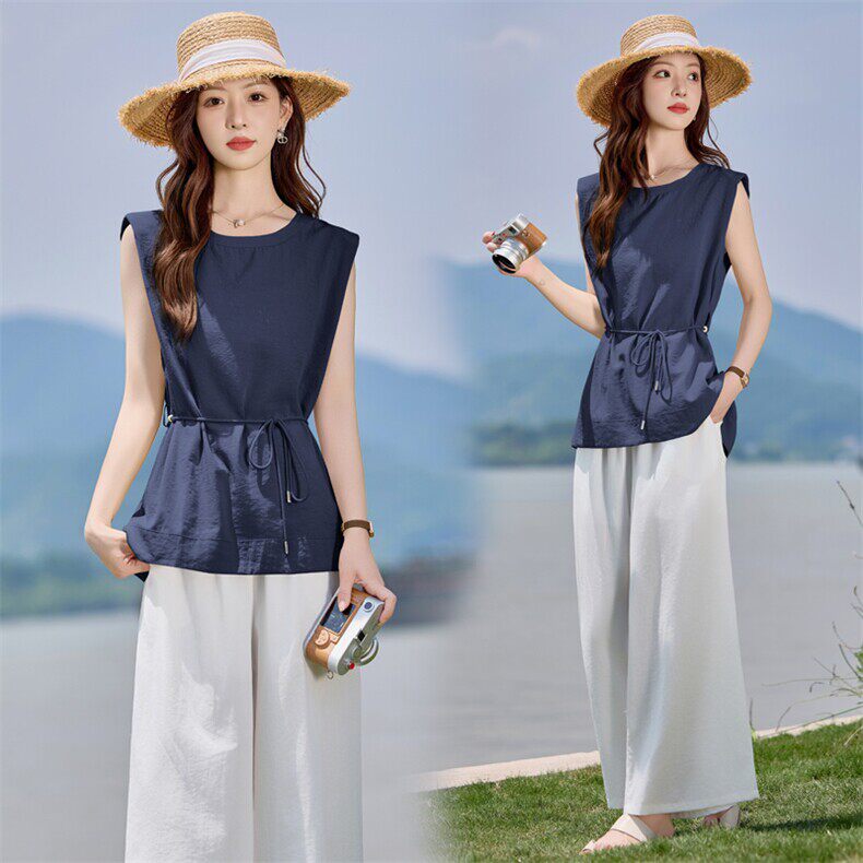 高级感气质无袖 两件套女夏季 休闲套装 洋气 马甲阔腿裤由