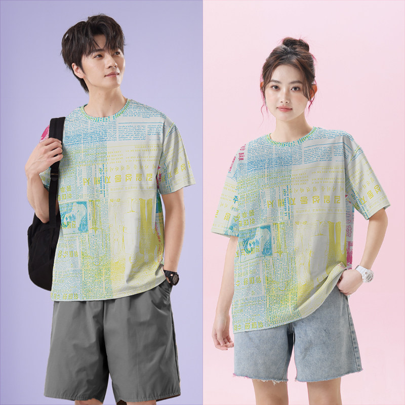 无界 中文韩语英文新闻旧报纸杂志拼贴速干T恤男女复古怀旧体恤设