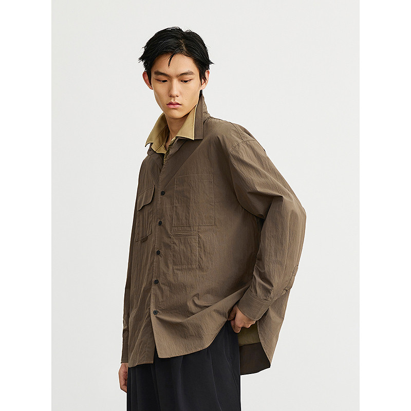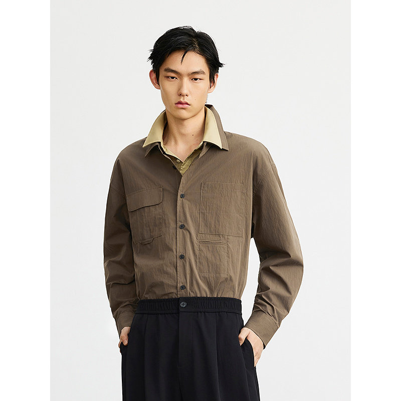 新品 GXG男装 G25X031007 25年春季 衬衫 棕色口袋设计简约时尚 长袖
