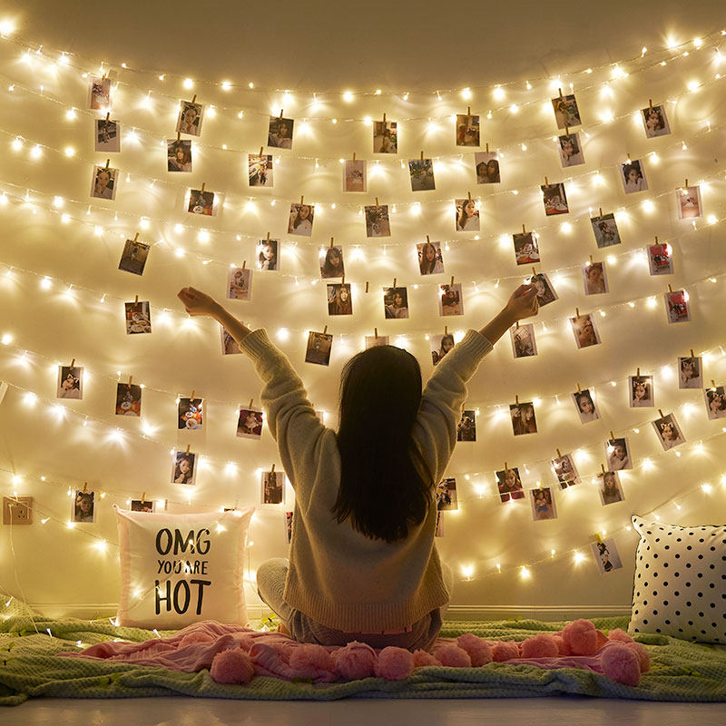 饰麻绳挂卧室少女房间宿舍相框 相片夹网红照片墙夹子悬挂无痕钉装