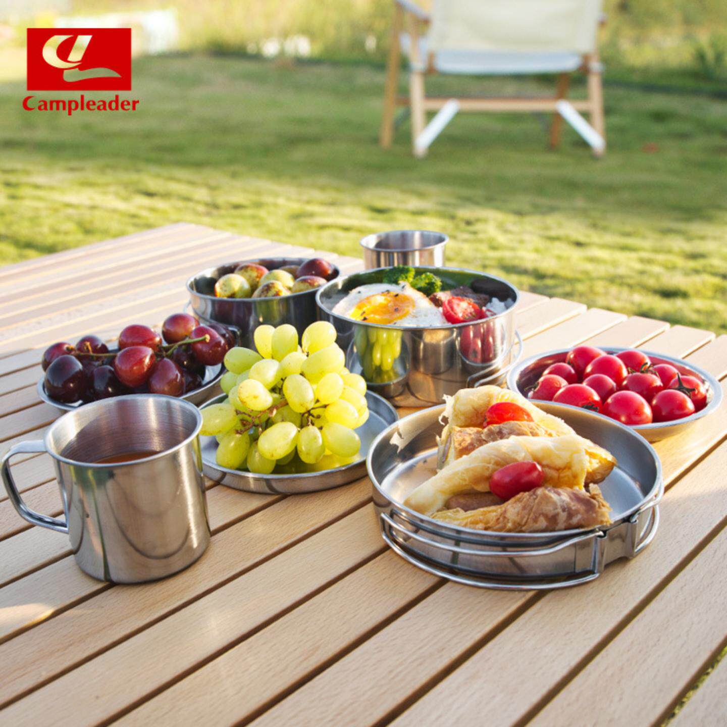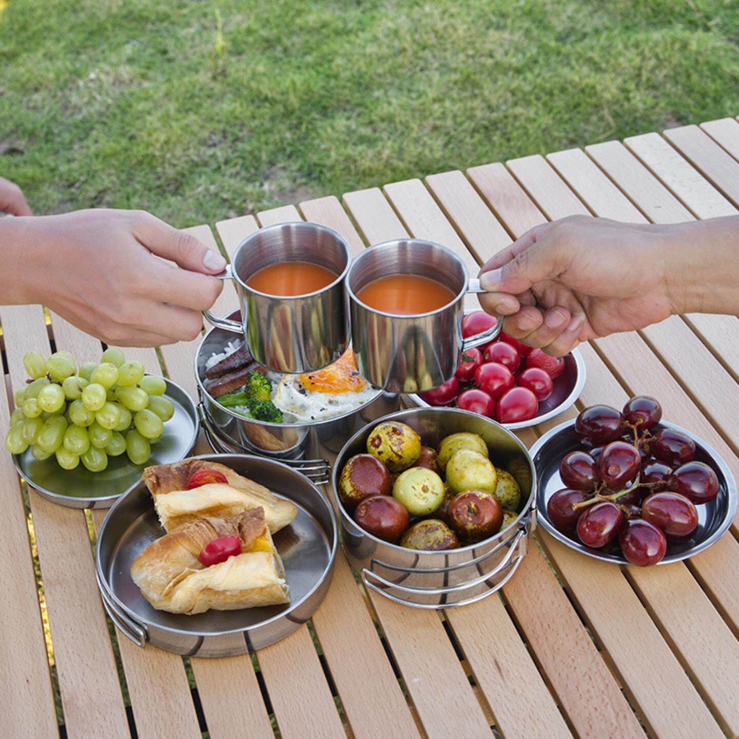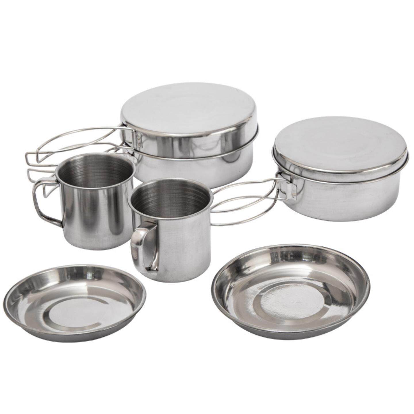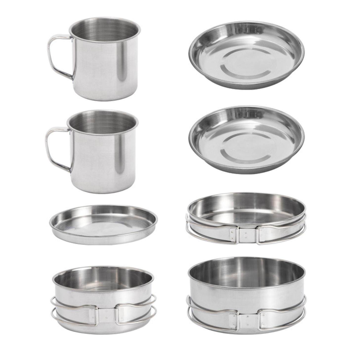 户外不锈钢套锅件套餐具套碗烧烤锅具登山 野营 人折叠套装
