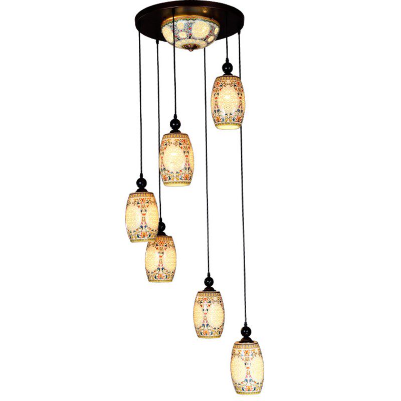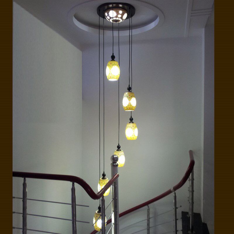 楼楼梯吊灯酒店别墅楼梯旋转式 长吊灯陶瓷大吊灯 楼梯吊灯复式 中式