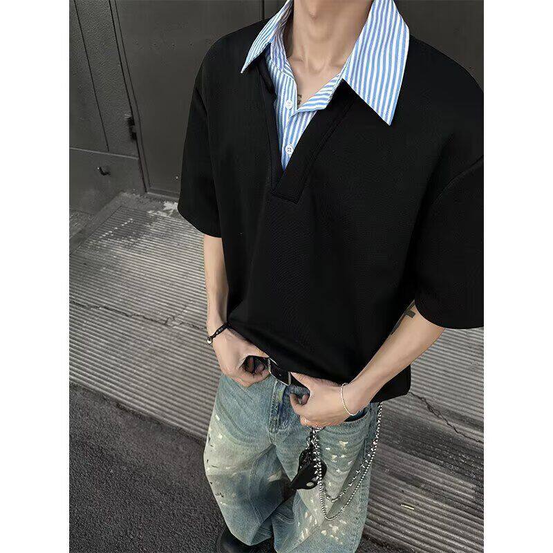 假两件衬衫 特P30 CD33 潮牌高级感 T恤男款 夏季 领短袖 A336由