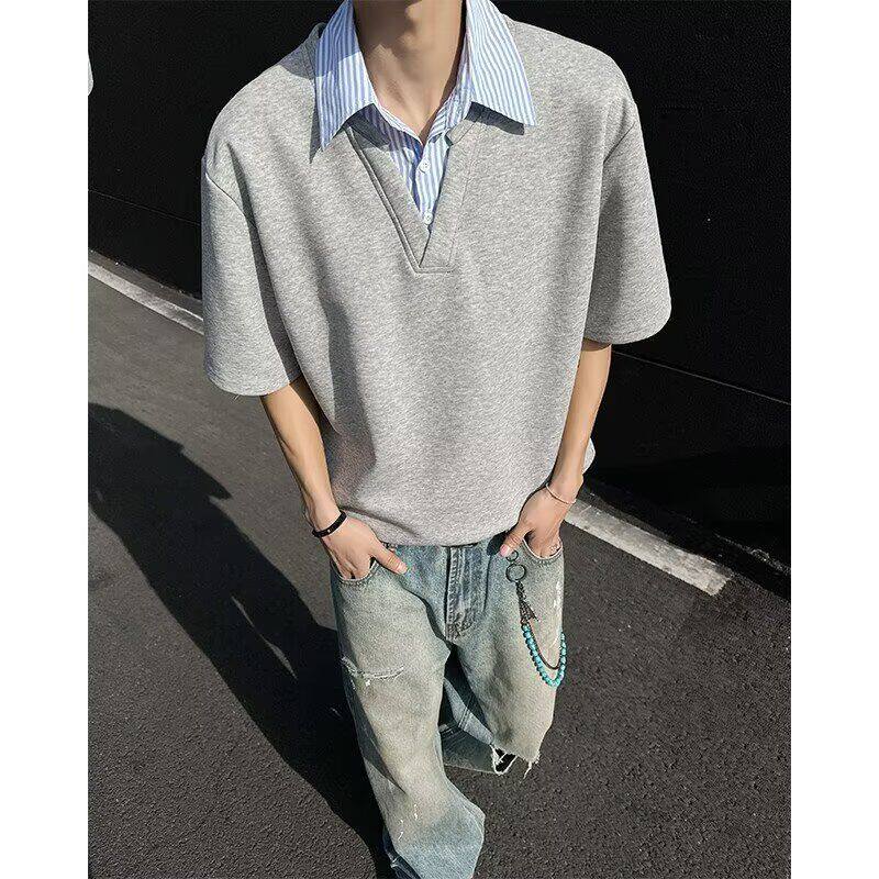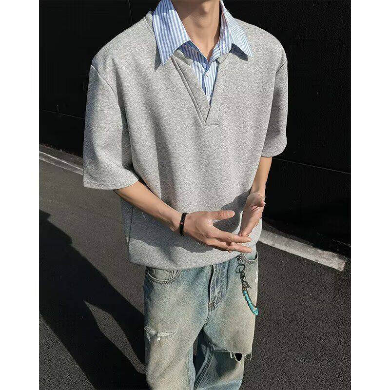 假两件衬衫 特P30 CD33 潮牌高级感 T恤男款 夏季 领短袖 A336