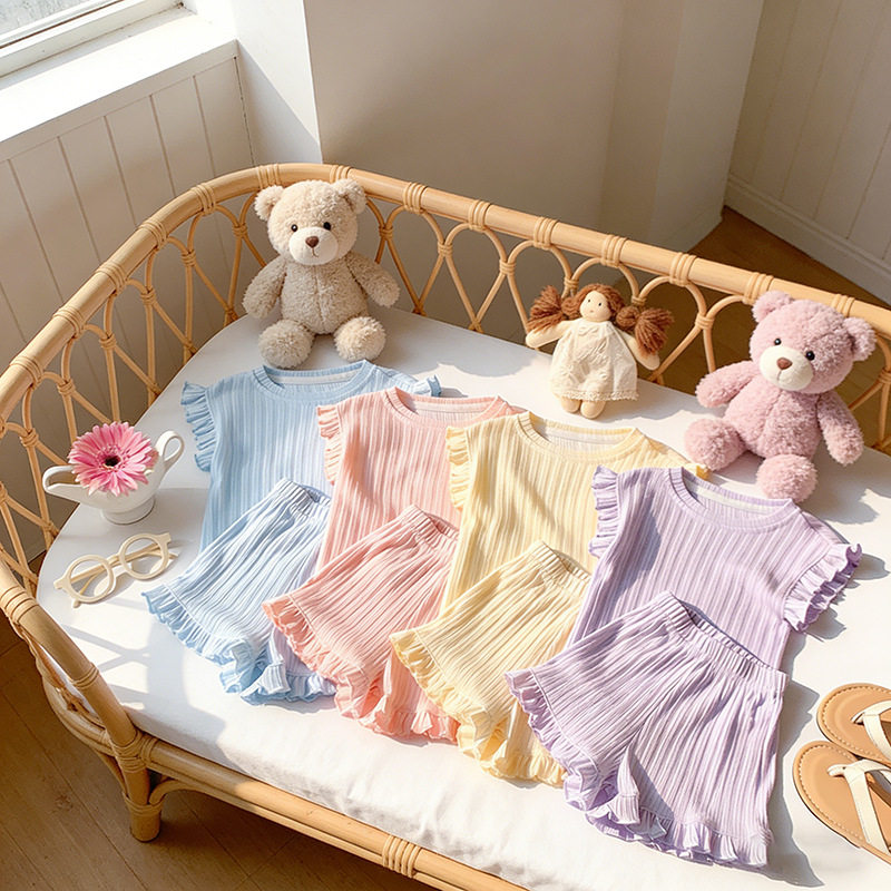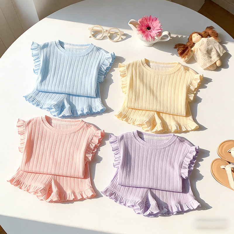 夏季 女童宝宝冰丝套装 新款 背心上衣短裤 洋气两件套装 无袖 2026夏季