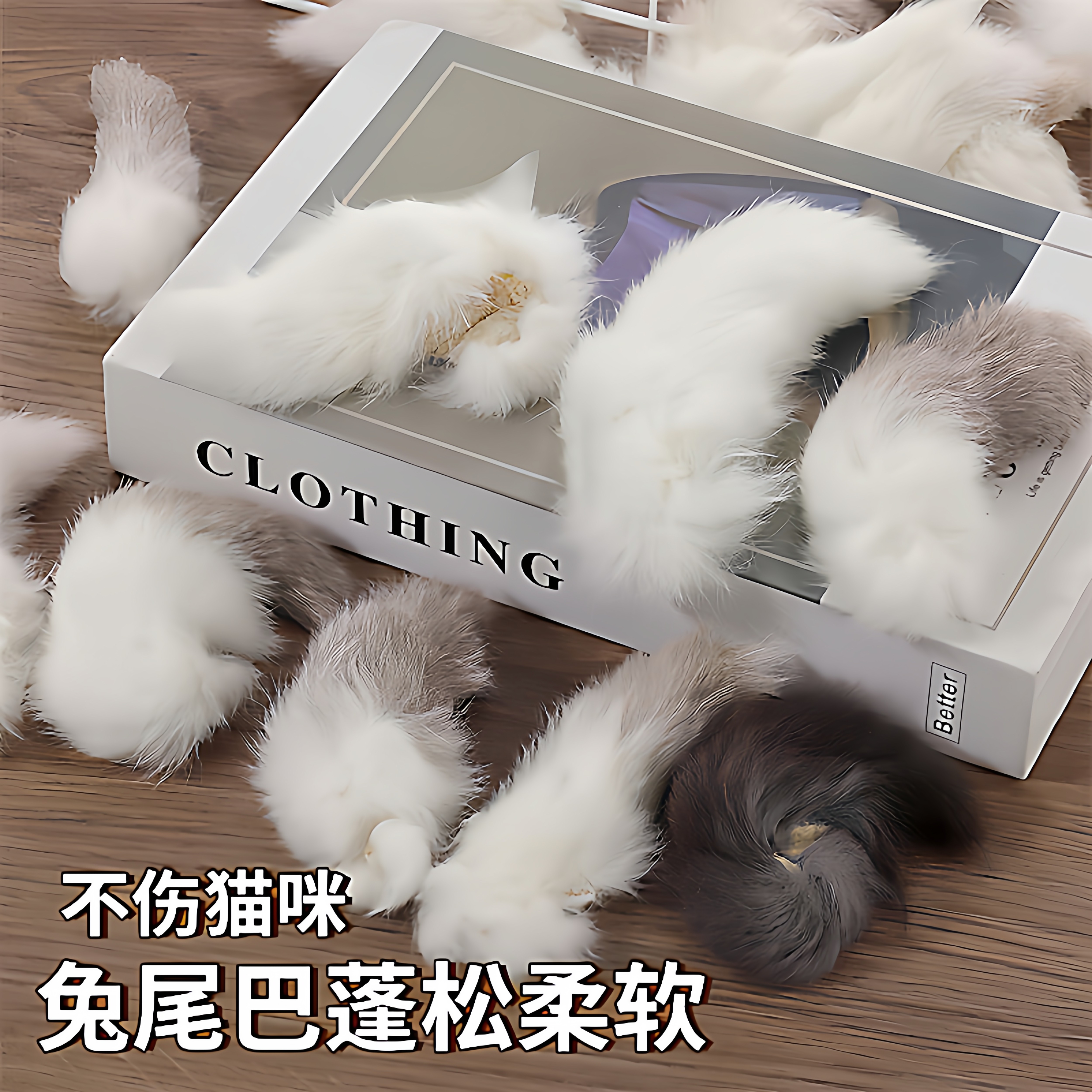 为您提供商品真兔尾巴带尾骨猫咪丰容玩具气味毛绒闻嗅自娱趣味逗猫棒宠物的详细介绍,