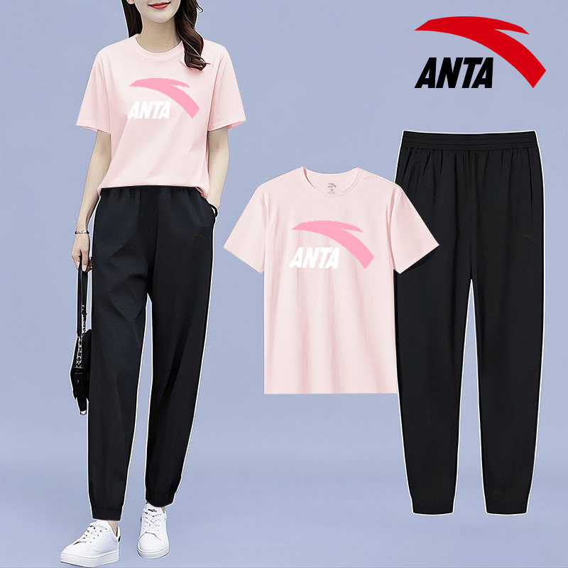 短袖 安踏运动休闲服套装 夏季 洋气时尚 夏装 两件套夏天修身 女装 长裤