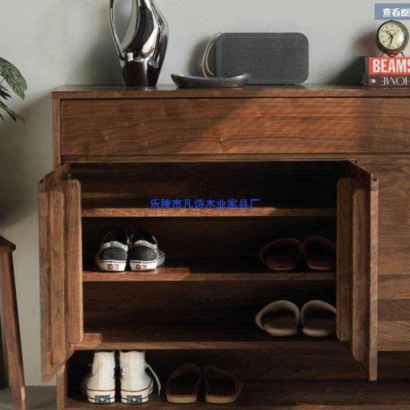 柜家用门口小户型北欧全实木玄关柜储物柜隔断 北美黑胡桃木鞋由