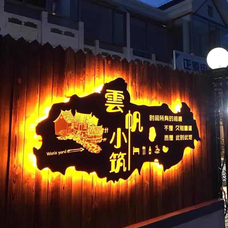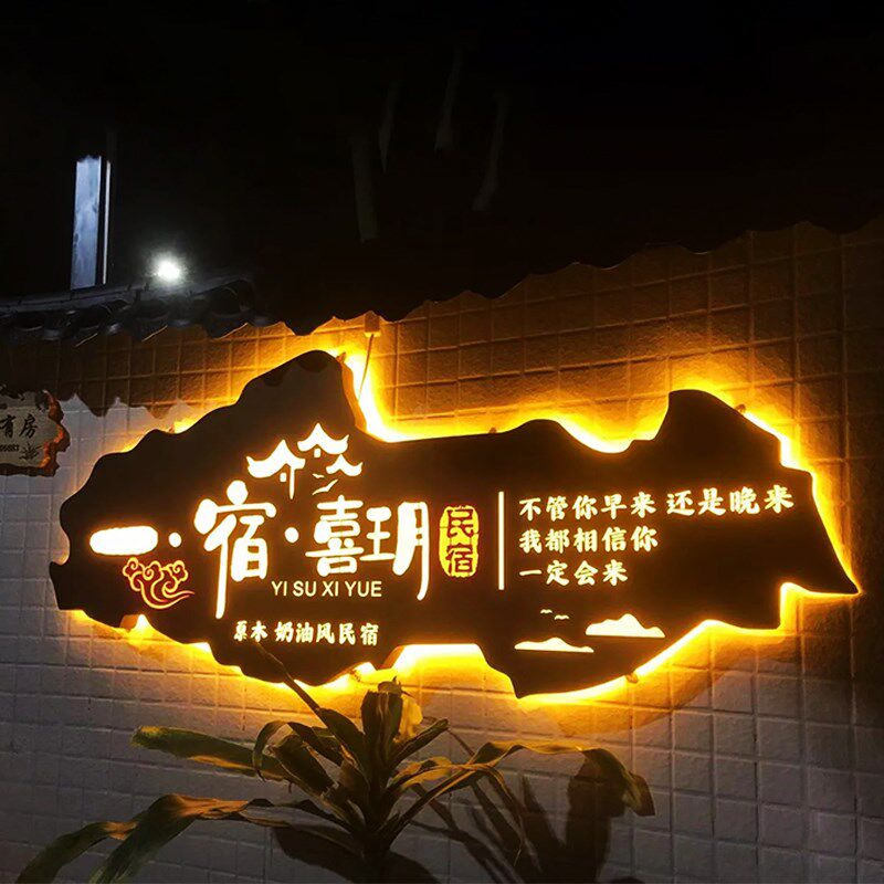 饰招牌背景墙镂空铁艺灯箱广告牌 室外防水民宿发光装