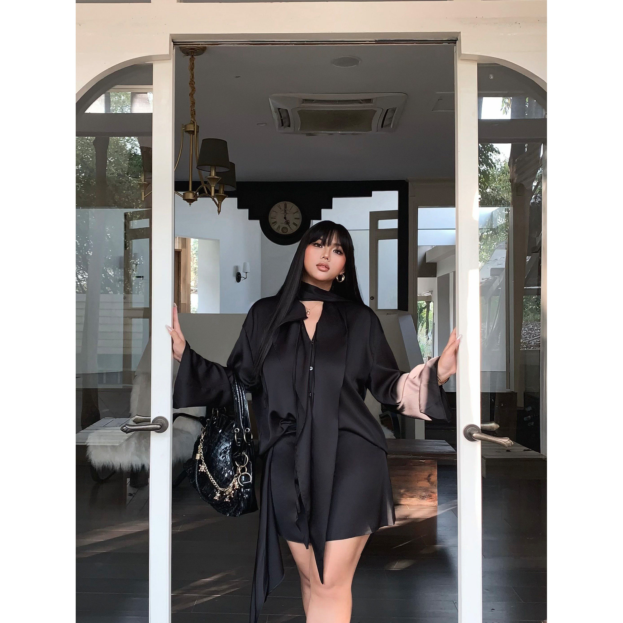 为您提供商品荷叶边防晒长袖 楠哥微胖复古黑色时尚 高级感套装 女夏大码 显瘦 衬衫的详细介绍,