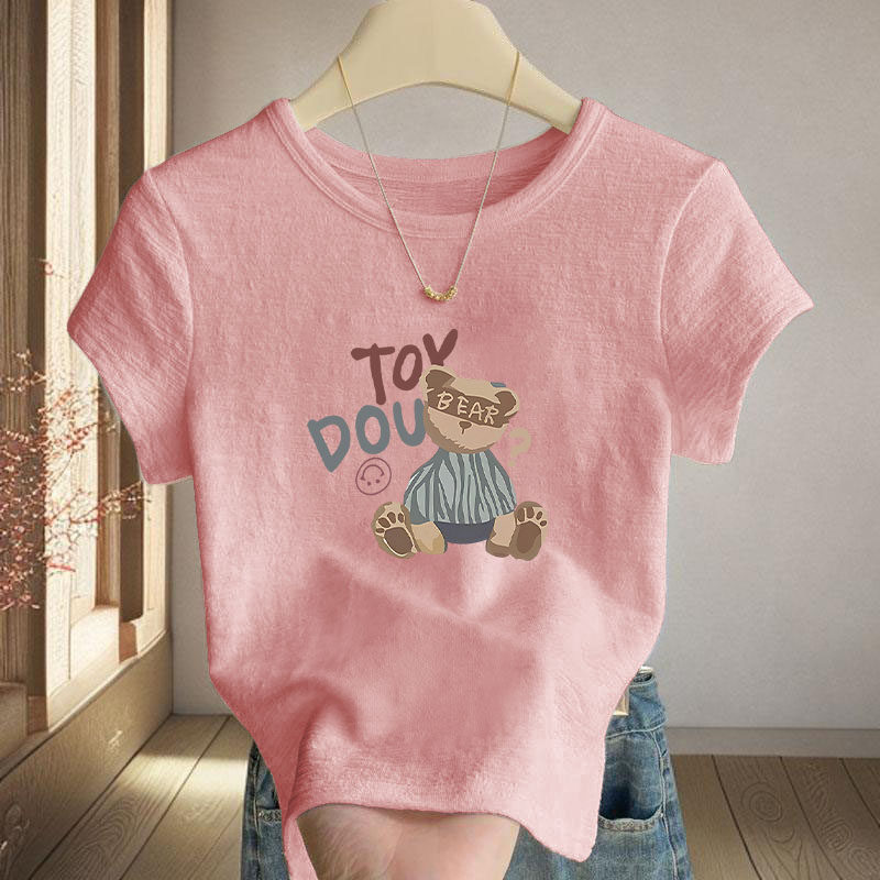 休闲别致圆领上衣女士2026夏季 小个子竹节棉短款 短袖 印花T恤 新款