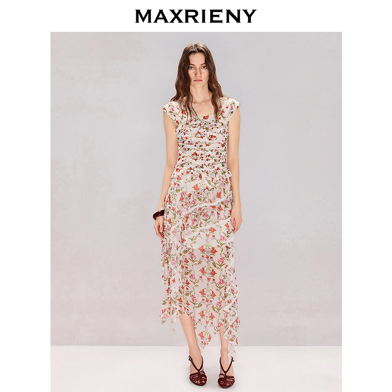 为您提供商品衬衫 MAXRIENY方领抽褶印花短款 碎花薄款 无袖 上衣2026年夏季 新款的详细介绍,