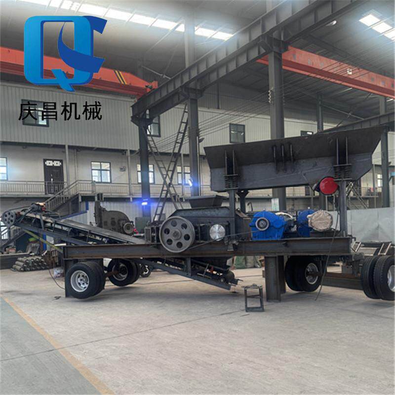 移动对辊制砂机铝渣煤矿石齿辊破碎机瓜米石建筑石料矿石制沙机