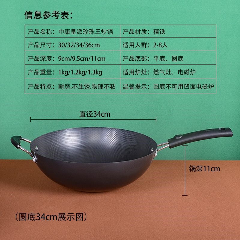 为您提供商品中康珍珠王炒锅无涂层无油烟不粘锅家用铁锅燃气灶电磁炉通用锅具的详细介绍,