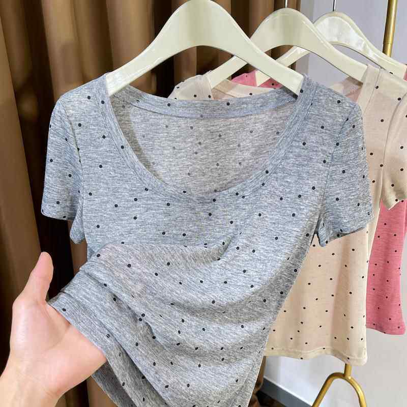 t恤女2026新款 薄针织上衣大圆领内搭打0327z 低领波点短袖 初春女装