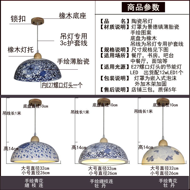 为您提供商品薄胎瓷吊灯卧室餐厅吧台吊灯可调节高度吊灯青花瓷牡丹花 新中式的详细介绍,