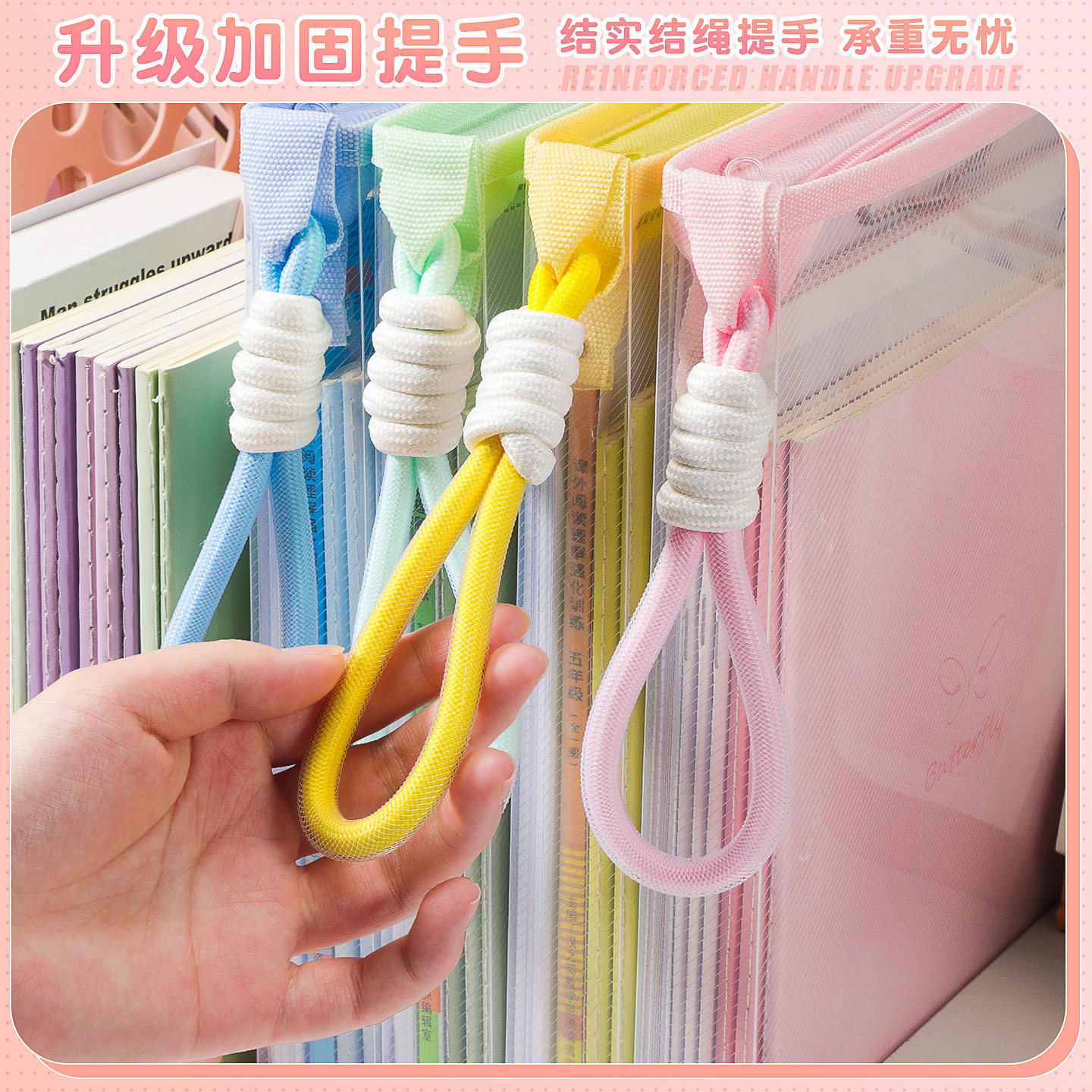 淡彩色手提高颜值文件袋学生拎书袋拉链式 书袋子 透明书本试卷收纳袋初中女生A4作业资料袋小学生补课补习袋装