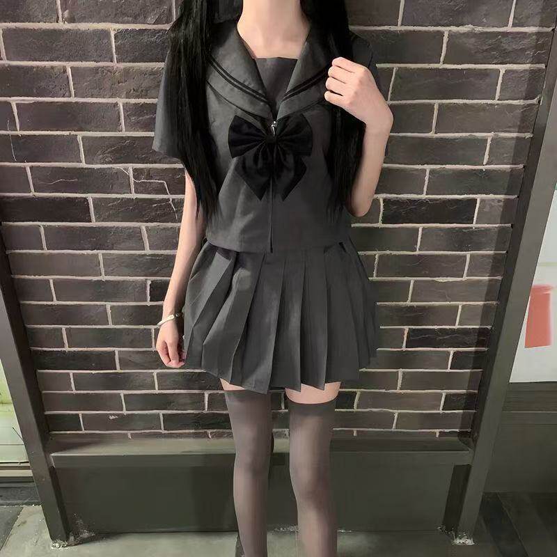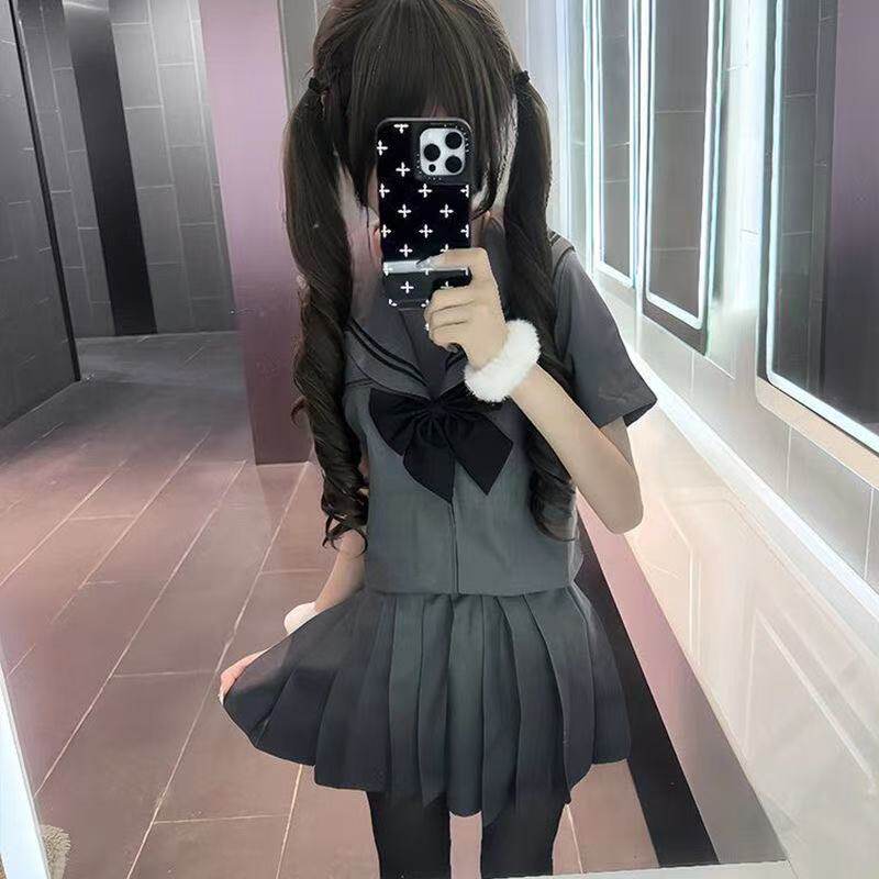 百褶裙日系正统套装 学院风短裙 水手服JK制服夏季 灰二本原创正版