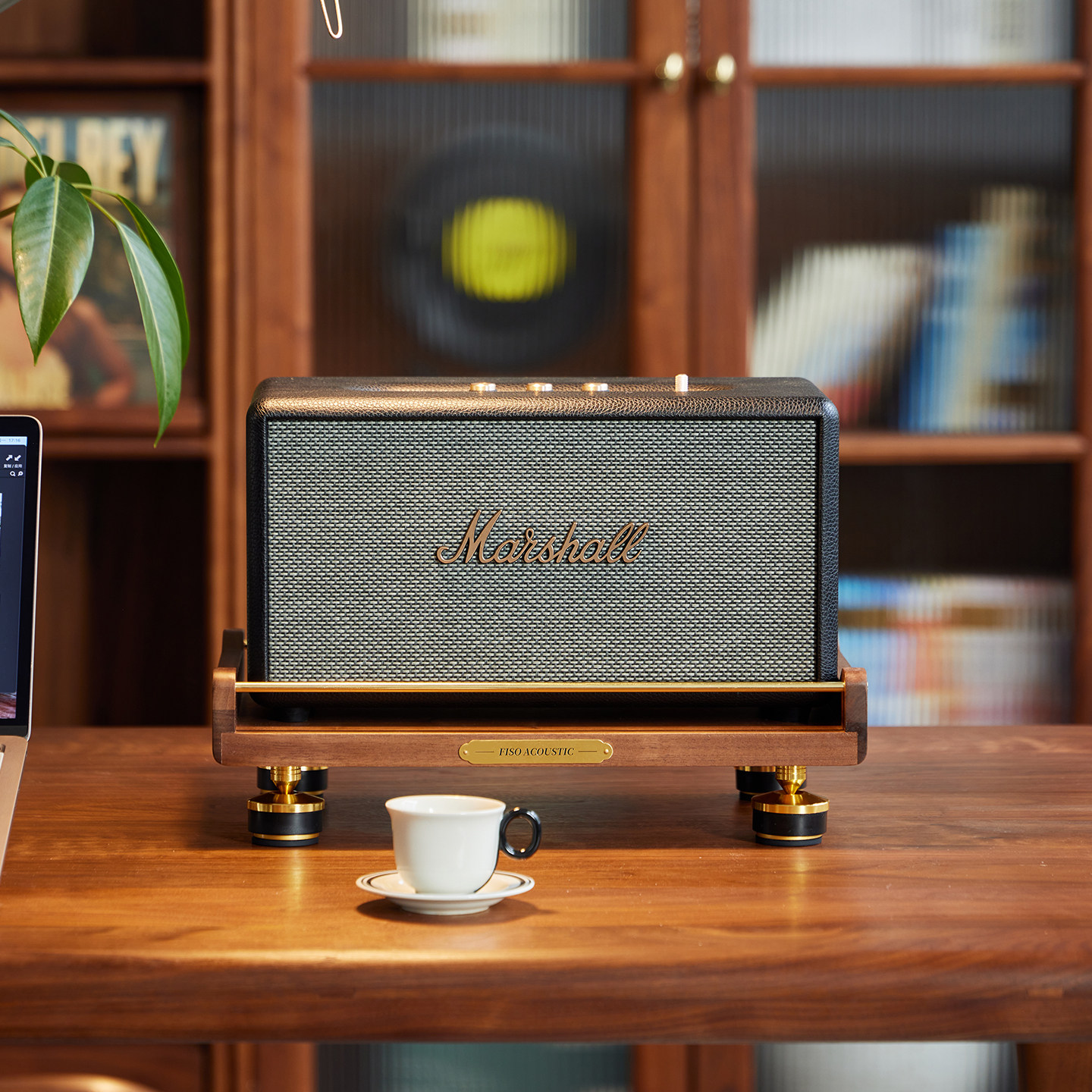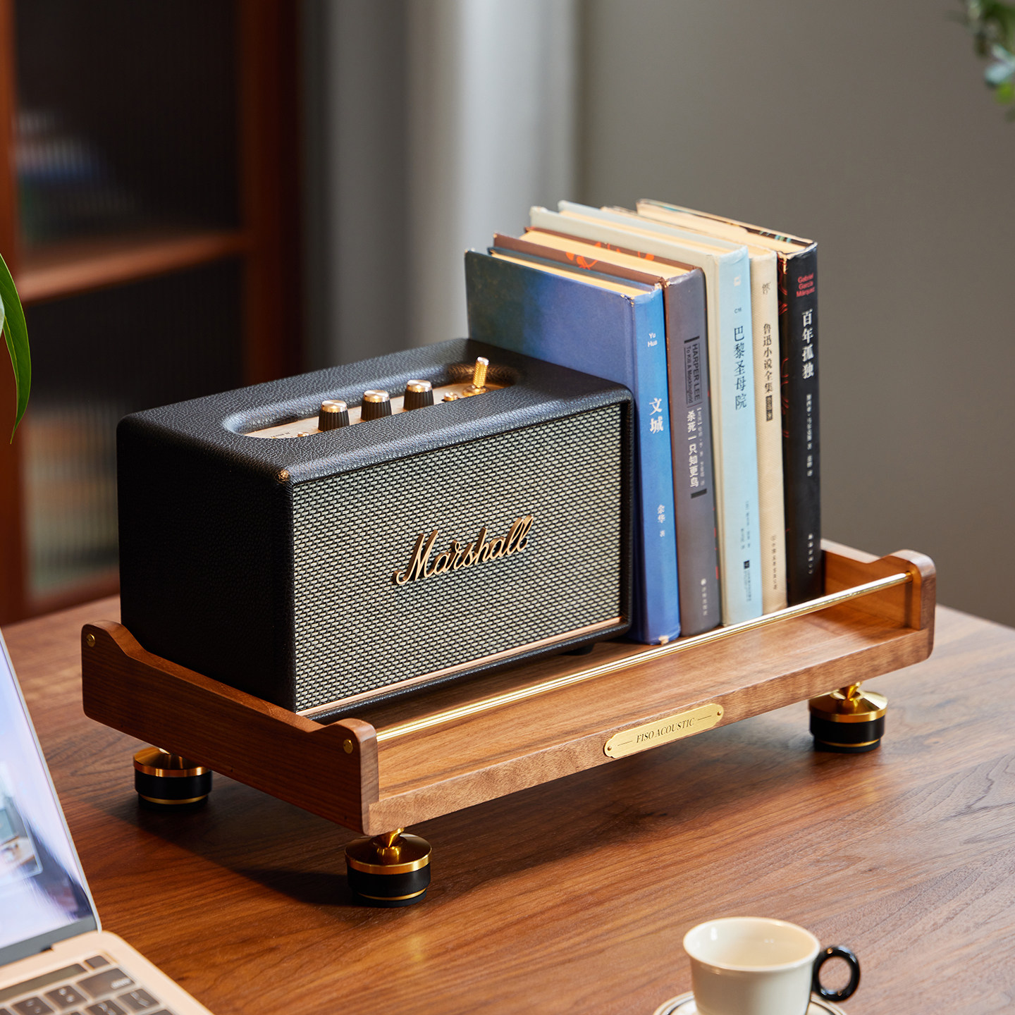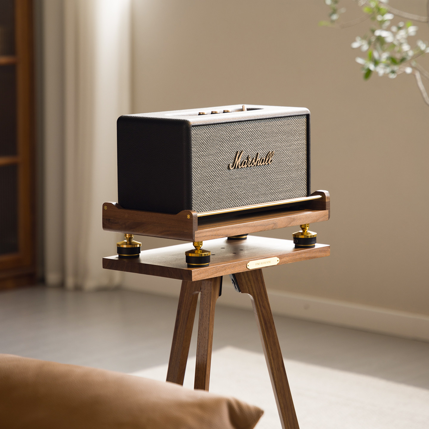 Fiso适用MARSHALL马歇尔桌面音响支架音箱避震减震实木支架黑胡桃由
