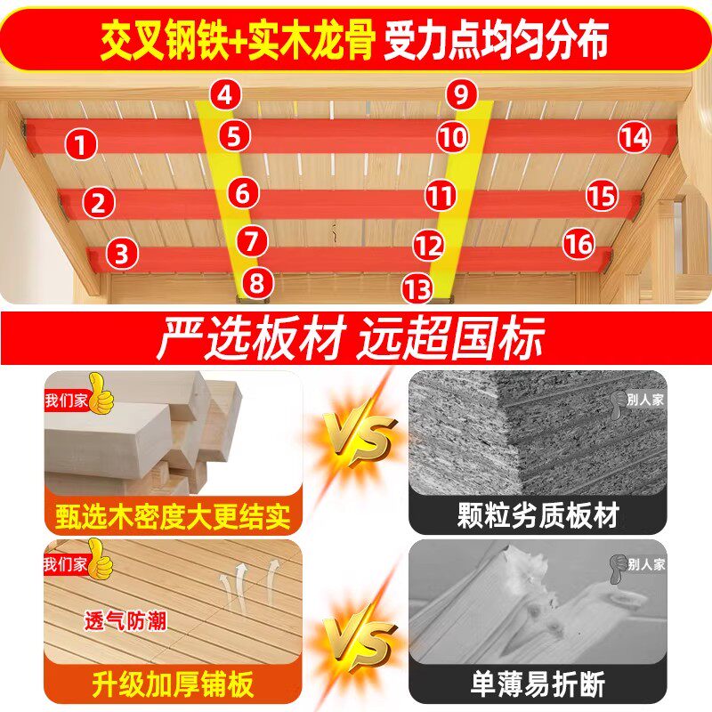 金多喜上下床双层床实木上下铺小户型高低床榉木儿童床加厚子母床