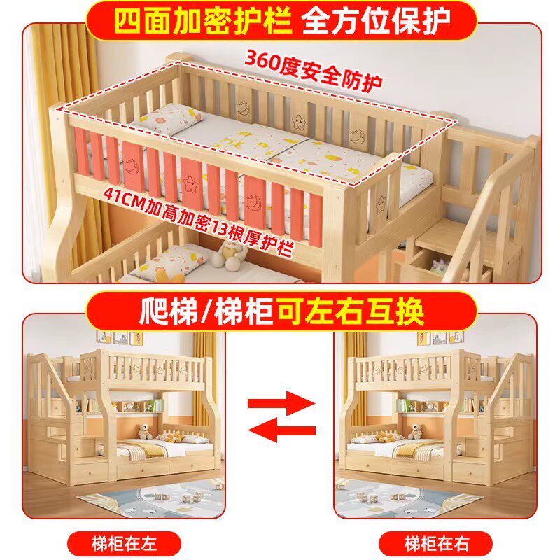 实木双层上下床组合多功能高低床加宽加厚子母床两层全实木儿童床